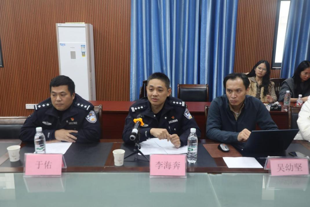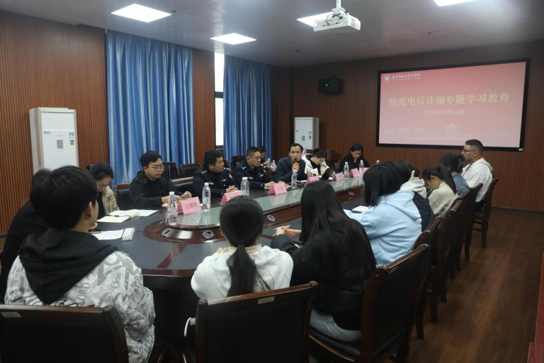 于12月16日下午在理科综合楼404会议室召开反诈专题座谈会。仙葫派出所副所长李海奔、于佑警官受邀主讲,学院党委副书记吴幼坚、团委书记钟振花、辅导员及23、24、25级学生代表参会。