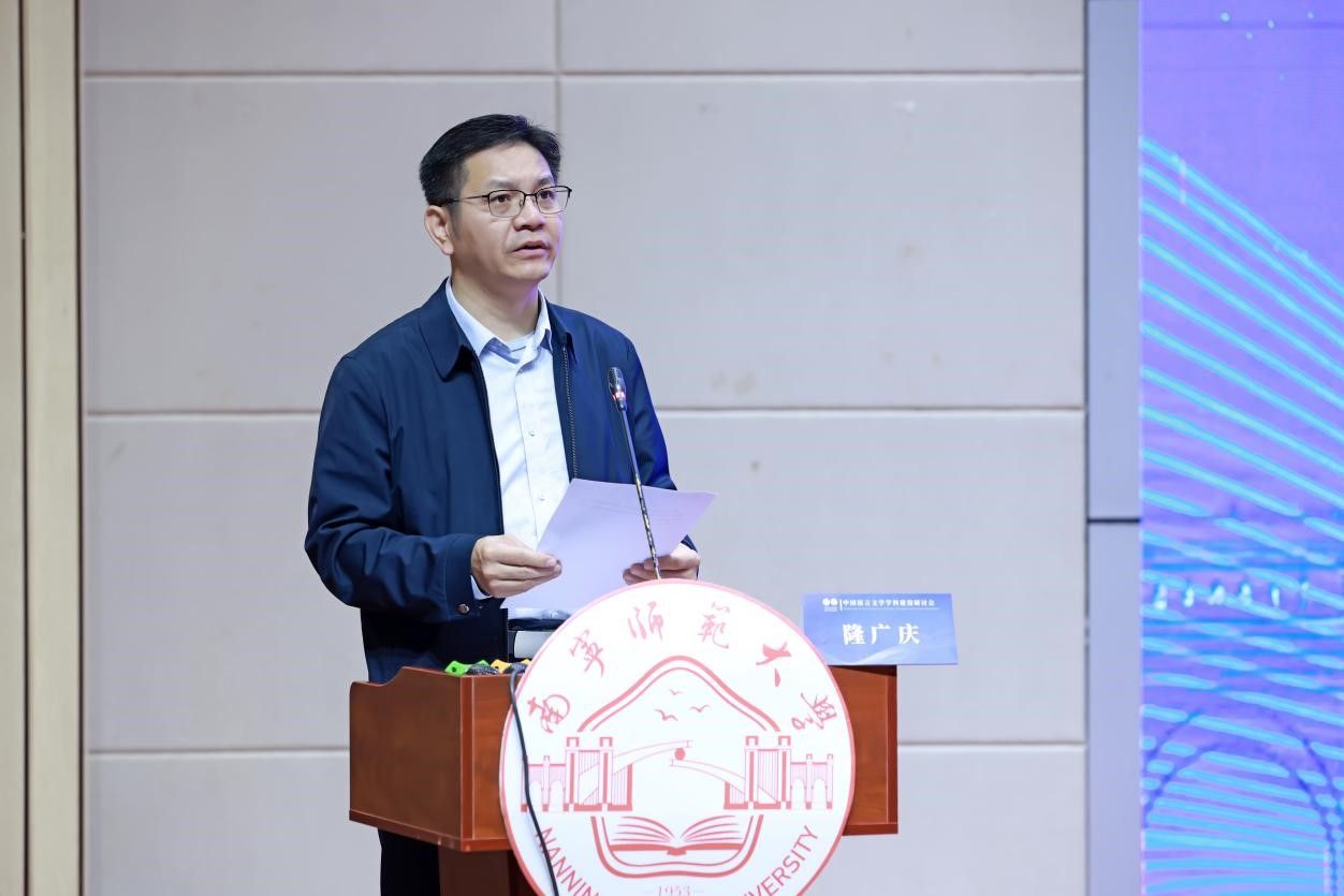 开幕式上,校长隆广庆代表情色小说致欢迎辞。他回顾了南宁师范大学七十余年的办学历史与跨越式发展历程,特别是2024年获批为博士学位授予单位、2025年获设教育博士专业学位点的重要成就。介绍了我校在人文社科领域取得的显著成绩,并着重指出情色小说